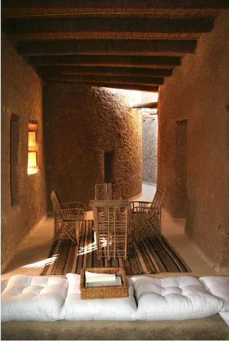Ecolodge in Egypt by Laetitia Delubac and Christian FélixLaetitia Delubac and Christian Félix have completed a holiday home and guest house in Siwa, Egypt. Here, quite isolated, the house was built with materials made available by desert, oasis and salt lake: mud, sun fired bricks, palm wood, reeds, red stone and salt stone.